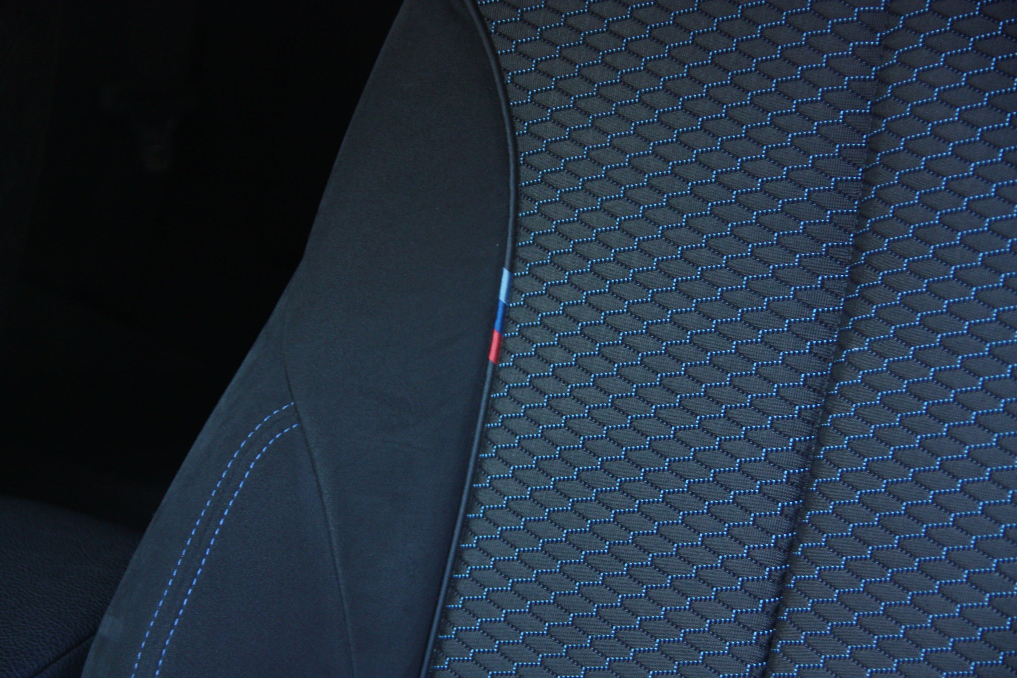 Intérieur : Noir tissus alcantara surpiqures bleu